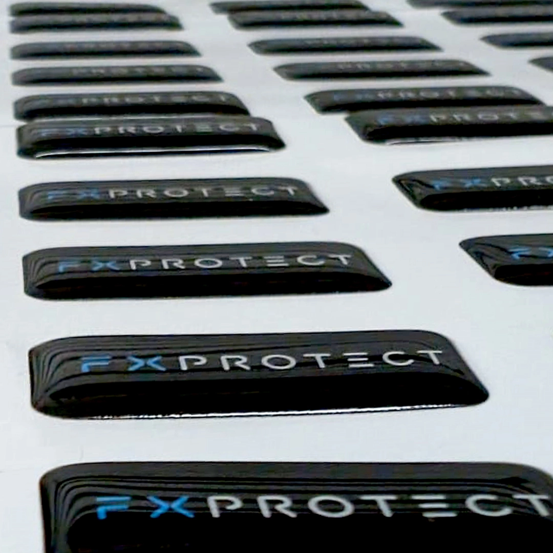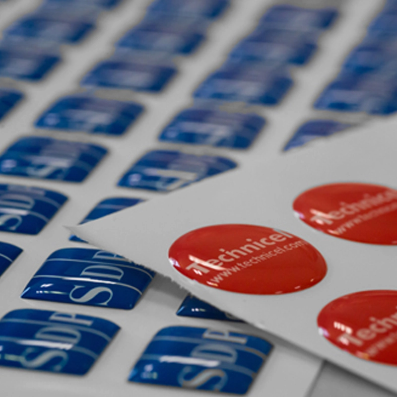 3D-etiketter är självhäftande etiketter täckta med en transparent polyuretan harts som ger dem en tredimensionell effekt och ökad motståndskraft mot mekaniska skador och fukt.