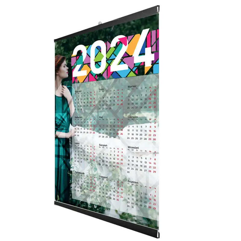 Väggkalender med lister är ett praktiskt och stilfullt tillskott som passar perfekt i kontor, hem eller servicepunkter. Utrustad med metallister med upphängning, garanterar den enkel användning. Den stora tryckytan möjliggör fullständig anpassning, vilket gör kalendern till ett effektivt reklamverktyg för ditt varumärke.