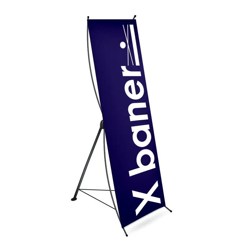 X-Banner, även känd som "spindel", är en ekonomisk och funktionell reklamlösning som är särskilt lämplig på försäljningsställen och kortvariga kampanjevenemang. Dess X-formade konstruktion möjliggör snabb montering och enkel grafikutbyte.