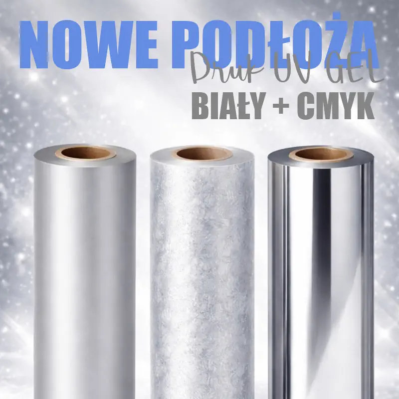 Genomfärgade folier, silver- och spegelfolie för UV GEL-tryck med vit färg.